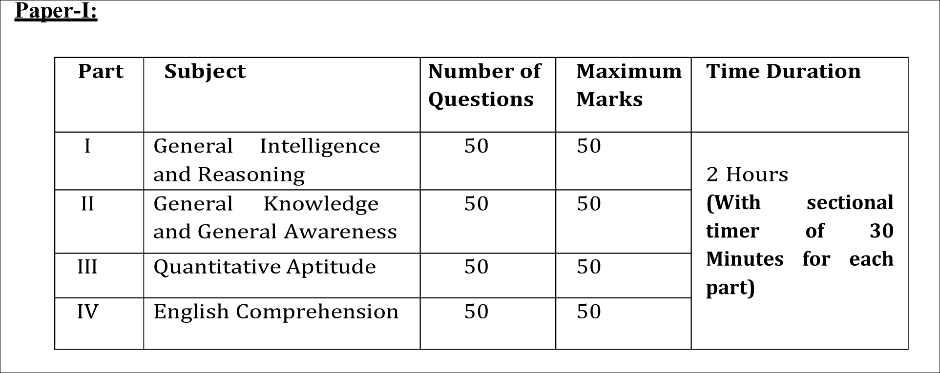 | [पेपर-1] :- कंप्यूटर आधारित परीक्षा (CBT): 200 अंकों का ऑब्जेक्टिव मल्टीपल चॉइस पेपर SSC द्वारा आयोजित कराया जायेगा । |